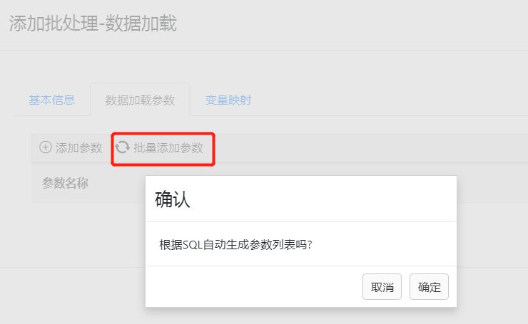 添加参数后,需要设置与批处理参数的绑定关系,这样在触发数据批处理任务是传入的批处理参数,就可以动态拼入SQL