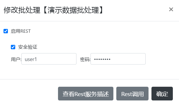 勾选【启用REST】将允许当前数据批处理允许触发调用。
