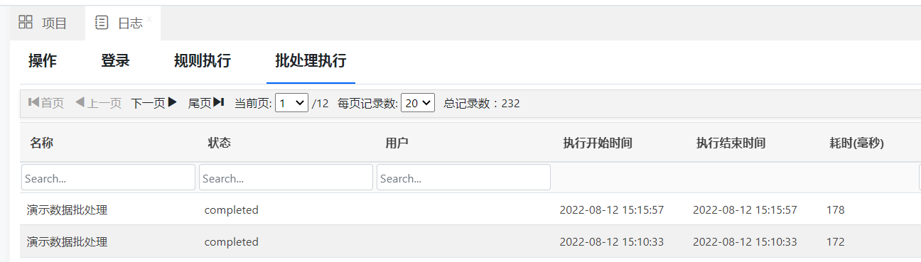 执行结果可在团队主页面-日志管理-批处理执行日志中查看