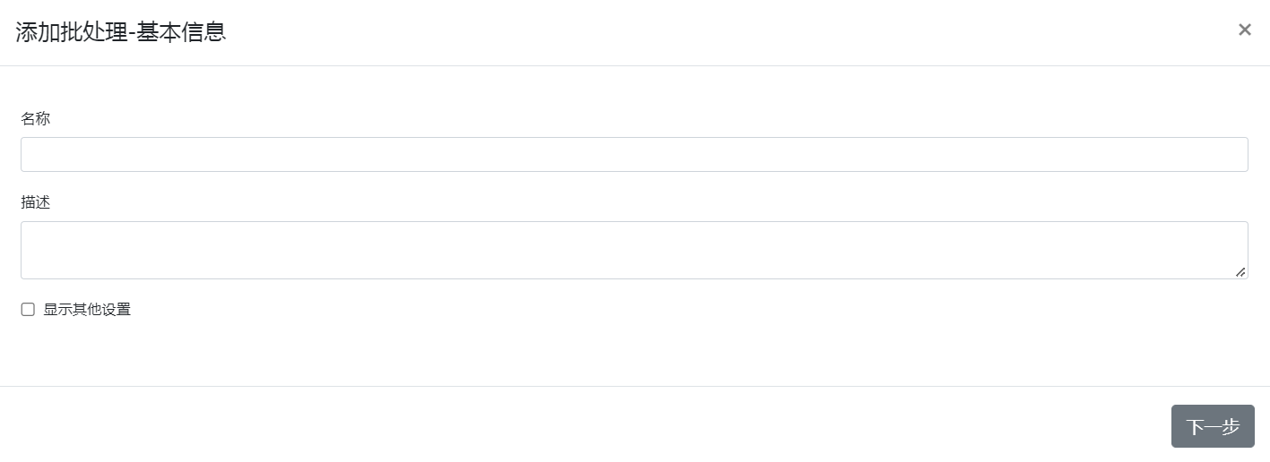 在数据批处理管理页面,点击【添加批处理】打开新建数据批处理配置页面。