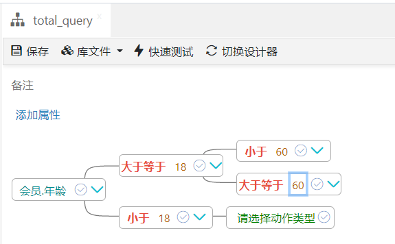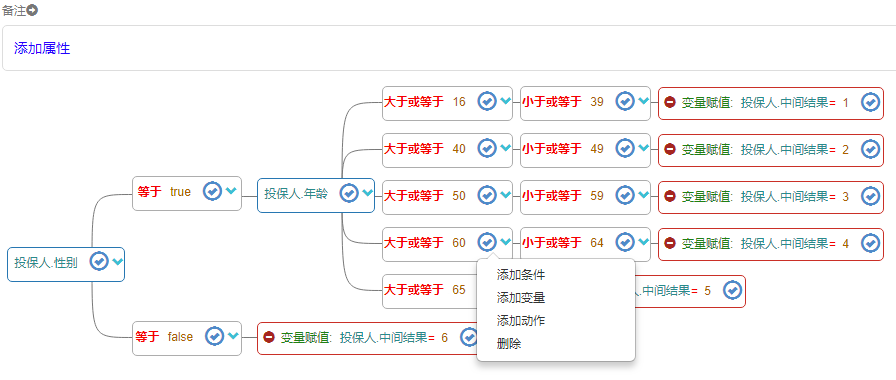 可以看到,相比“横向树设计器”,这种传统类型树设计器节点菜单内容更多,对树的编辑能力更强,因为它采用的是传统的树形结构展示,所以这种“纵向树设计器”有非常强大的树表现能力,可以快速展示成千上万个节点。 你在定义决策树时,如果节点数量过多,采用“横向树设计器”会发现其加载速度很慢,但切换到“纵向树设计器”则不存在这种问题。 同时大家也能看到“纵向树设计器”这种传统的树结构相比“横向树设计器”对树的表现能力略差一些,具体使用中大家可以根据情况灵活选择。